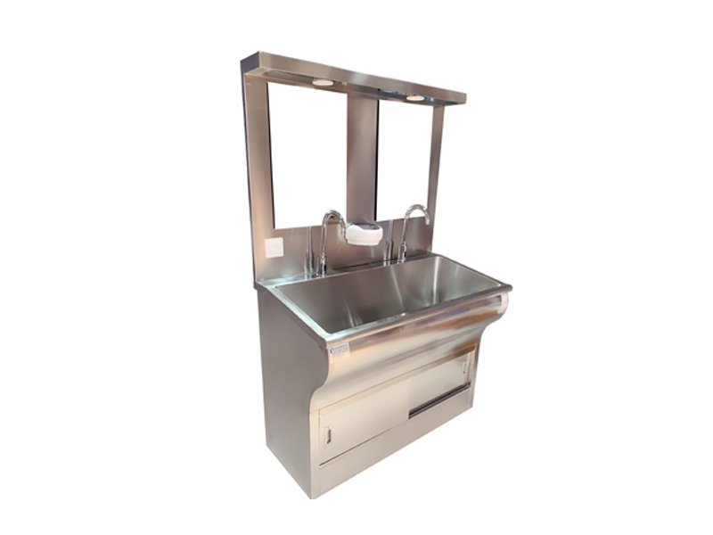 不銹鋼潔凈洗手池分為一人位、雙人位、三人位、四人位等,可根據(jù)客戶(hù)要求定制。無(wú)塵室不銹鋼洗手池、洗手槽采用SUS304不銹鋼制作,中間特殊靜音處理。槽身以人體工程學(xué)設(shè)計(jì)洗手時(shí)水花不易濺到身上。鵝頸型水龍頭,光控感應(yīng)式出水,可靠。配紅外線感應(yīng)給皂液裝置,醫(yī)用洗手池可選裝自帶40L美的電熱水器,自由設(shè)定出水溫度,一年四季可提供恒溫水,水龍頭感應(yīng)自動(dòng)出水,每個(gè)洗手位帶獨(dú)立鏡燈和鏡子,洗手槽采用特制的坡度設(shè)計(jì),可有效防止水濺到洗手池外,各水嘴獨(dú)立設(shè)置,不影響其它水嘴的使用。